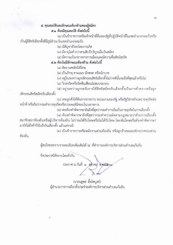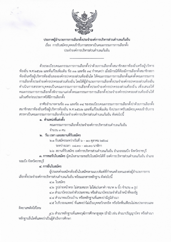 ประกาศ เรื่อง การรับสมัครเข้ารับการสรรหาเป็นคณะกรรมการเลือกตั้งประจำอบต.